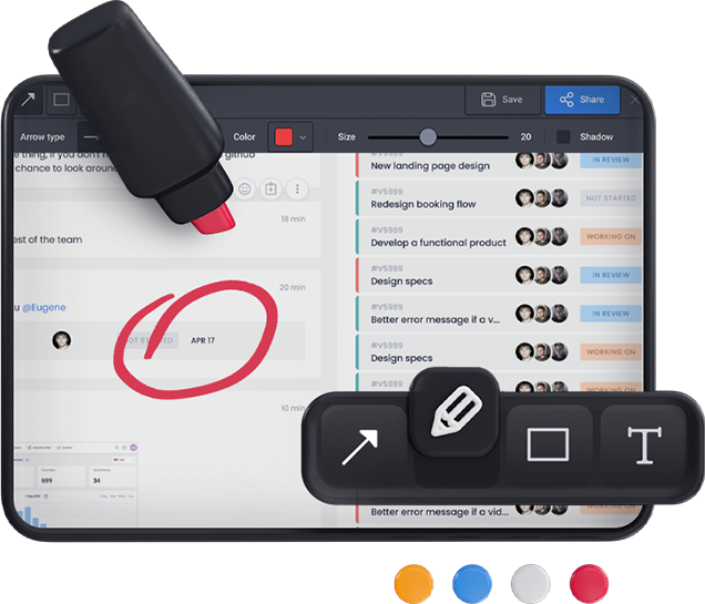 Draw an arrow, use a shape, or add color to specific elements of your screenshot … with Teamly’s image annotation tools, you can direct eyes exactly where you want them.